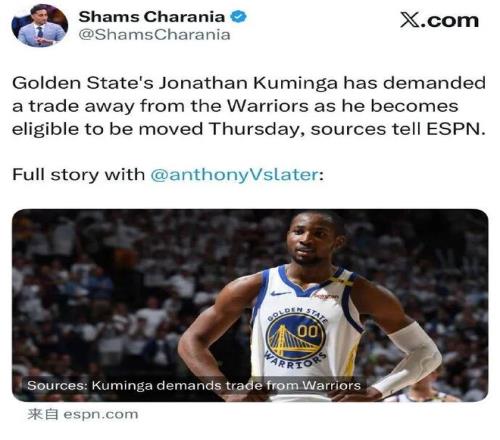 同样来自Shams的消息源,去年休赛期签约的两年4680万美元续约合同(第二年球队选项),库明加认为自己是被迫签署的,此举进一步恶化了他与勇士管理层的关系。